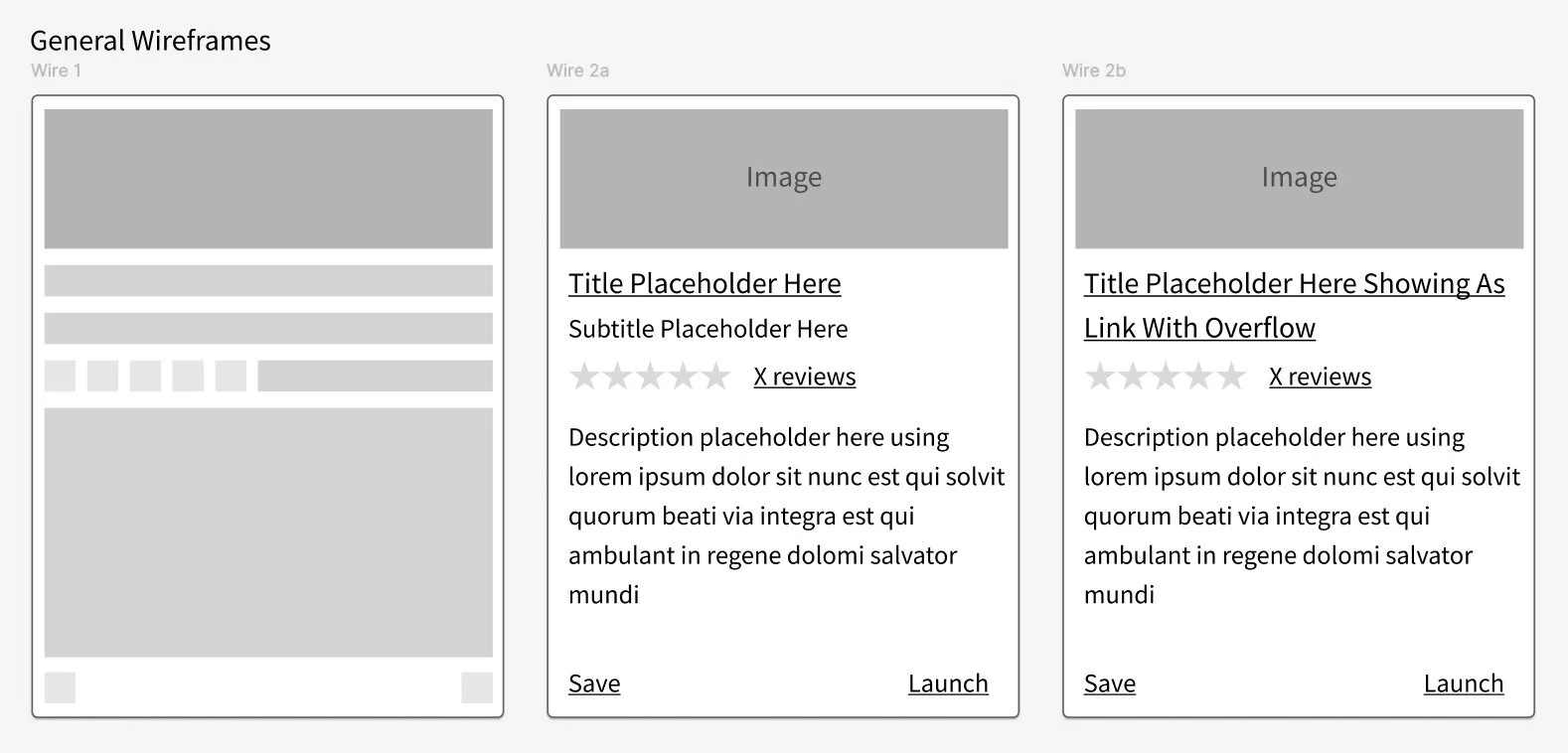 After reviewing market examples, I began to block out ideas on how our cards could display