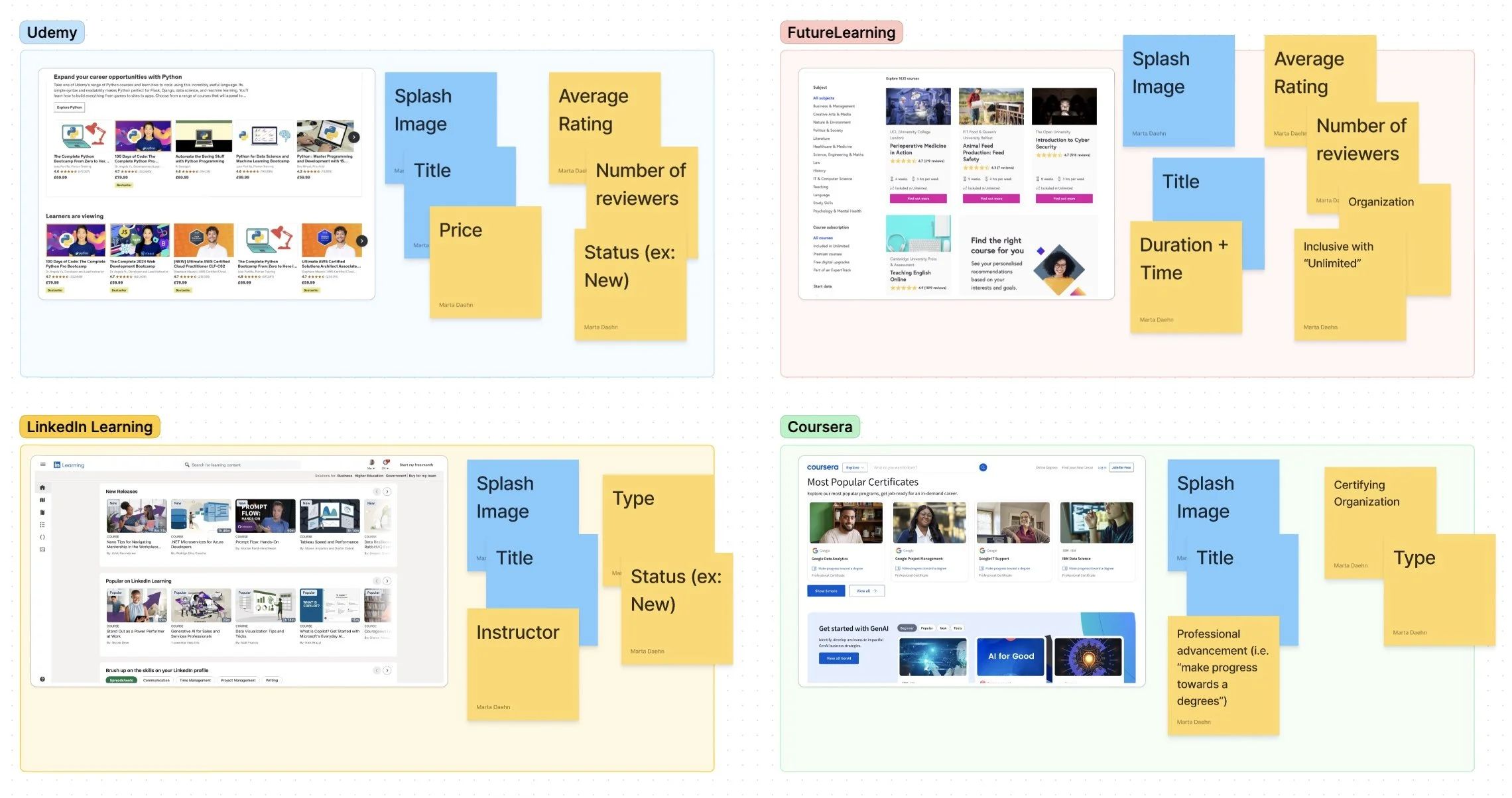 All examples featured a splash image and a title. The additional information included varied, and I consulted with the Product Team to determine what further details we should include in our version of the card.