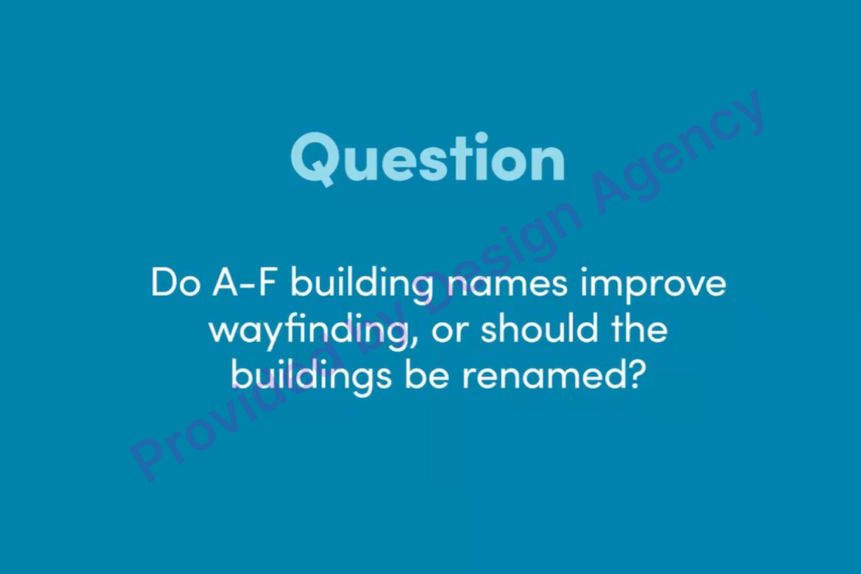 Lack of Hierarchy: building names and building letters are inter-changeable; it is unclear which is the most important