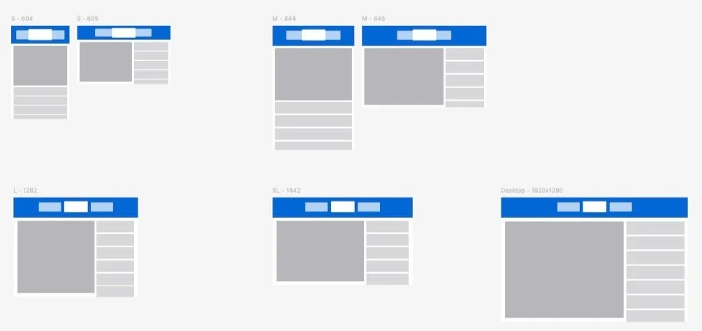 While the primary focus of this project was the mobile experience, we had to ensure the new designs could respond for a tablet or desktop experience. This effort began with wireframes to block out the main design components for a variety of screen sizes and orientations: